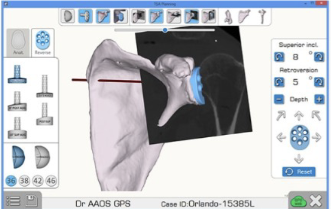 Durante l’intervento, grazie al posizionamento di tracker a infrarossi sulla spalla del paziente e alla rilevazione dei reperi anatomici tramite il sistema di navigazione, il chirurgo può seguire in tempo reale il planning preoperatorio, verificando la corretta esecuzione di ogni passaggio, sia nella preparazione che nel posizionamento della componente scapolare della protesi.