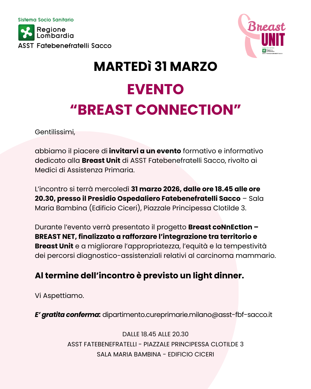 31 Marzo - Evento dedicato ai Medici di Assistenza Primaria - Breast Connection