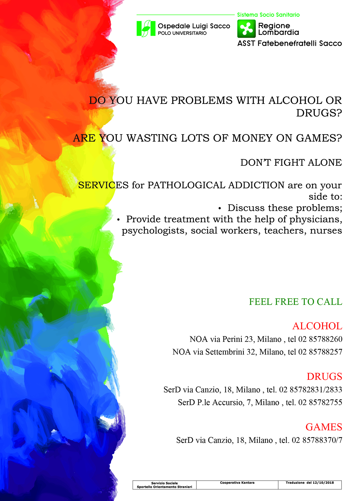 L’Unità Operativa Complessa Dipendenze possiede una consolidata tradizione e specializzazione nel trattamento di tutte le Dipendenze, in particolare quelle da Cocaina e da Gioco D’Azzardo, che la vede all’avanguardia nel panorama cittadino sia per la specificità degli interventi mirati, sia per l’impegno in ambito scientifico (la struttura ha in essere convenzioni e collaborazioni con l'Università Cattolica di Milano ed ha, inoltre, realizzato alcune ricerche e pubblicazioni, su riviste internazionali, nell’ambito delle Dipendenze Patologiche).